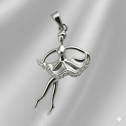 Elegant ballerina pendant in 925 sterling silver with 5A quality Signity Stone sparkle. Perfect for gifting & festive wear.