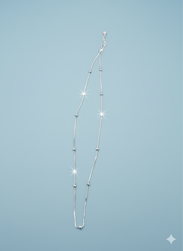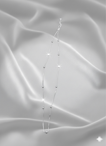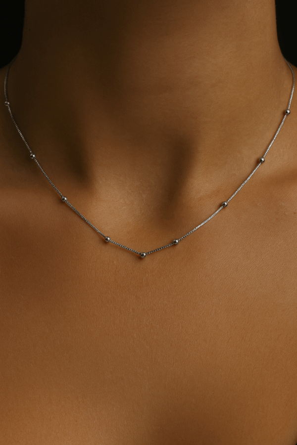 Minimal sterling silver beaded chain, perfect for layering or solo festive style.
