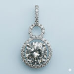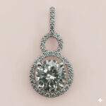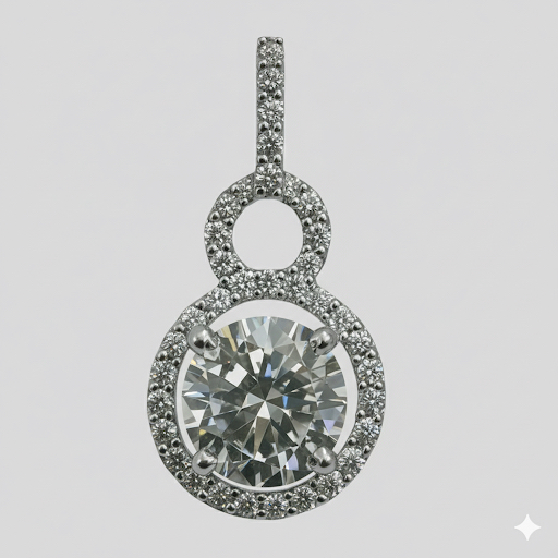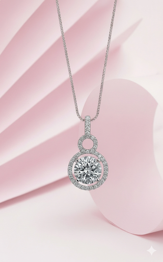 Modern double circle pendant in sterling silver with 5A quality Signity Stone halo design.