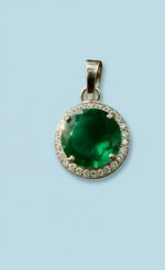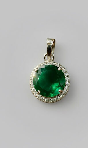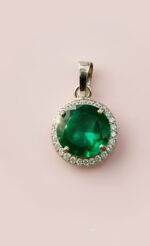 Regal emerald halo pendant with 5A quality Signity Stone brilliance, crafted in 925 silver.