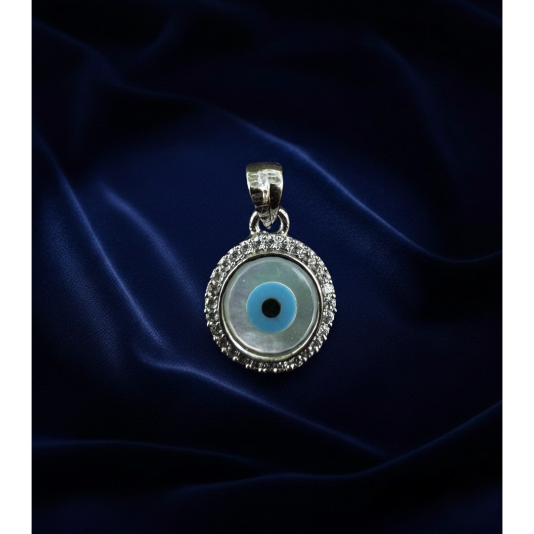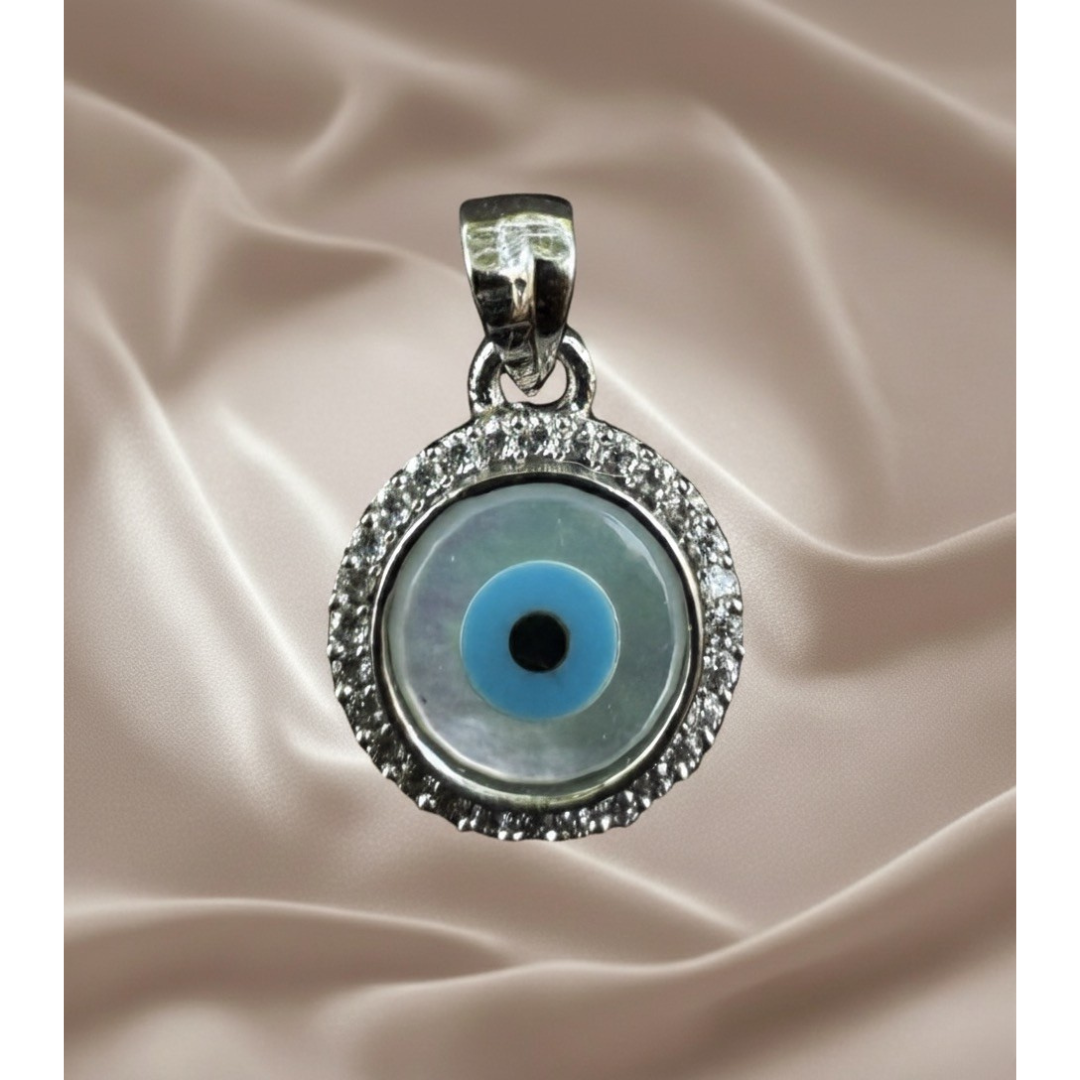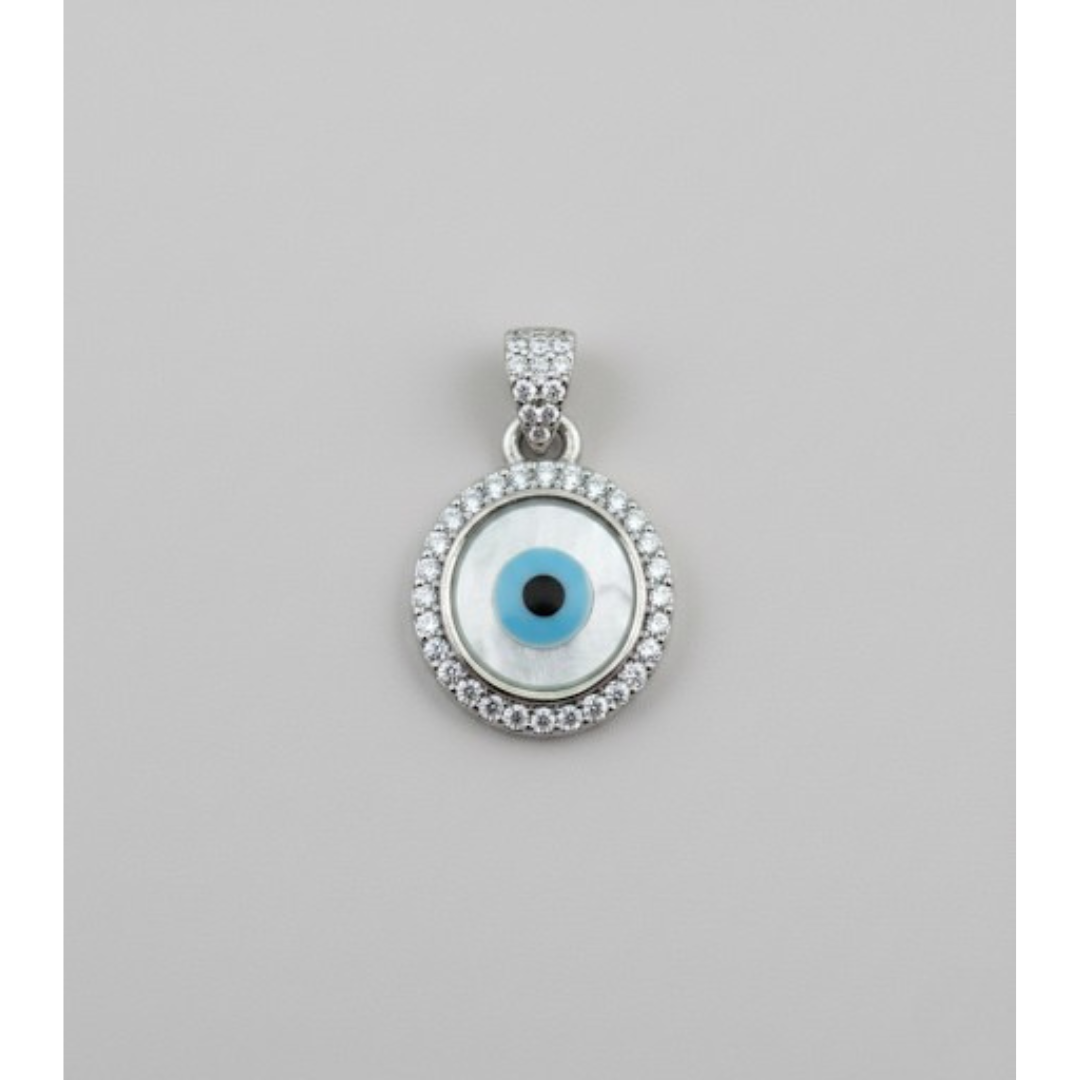 Protective evil eye charm in sterling silver with 5A quality Signity stones.
