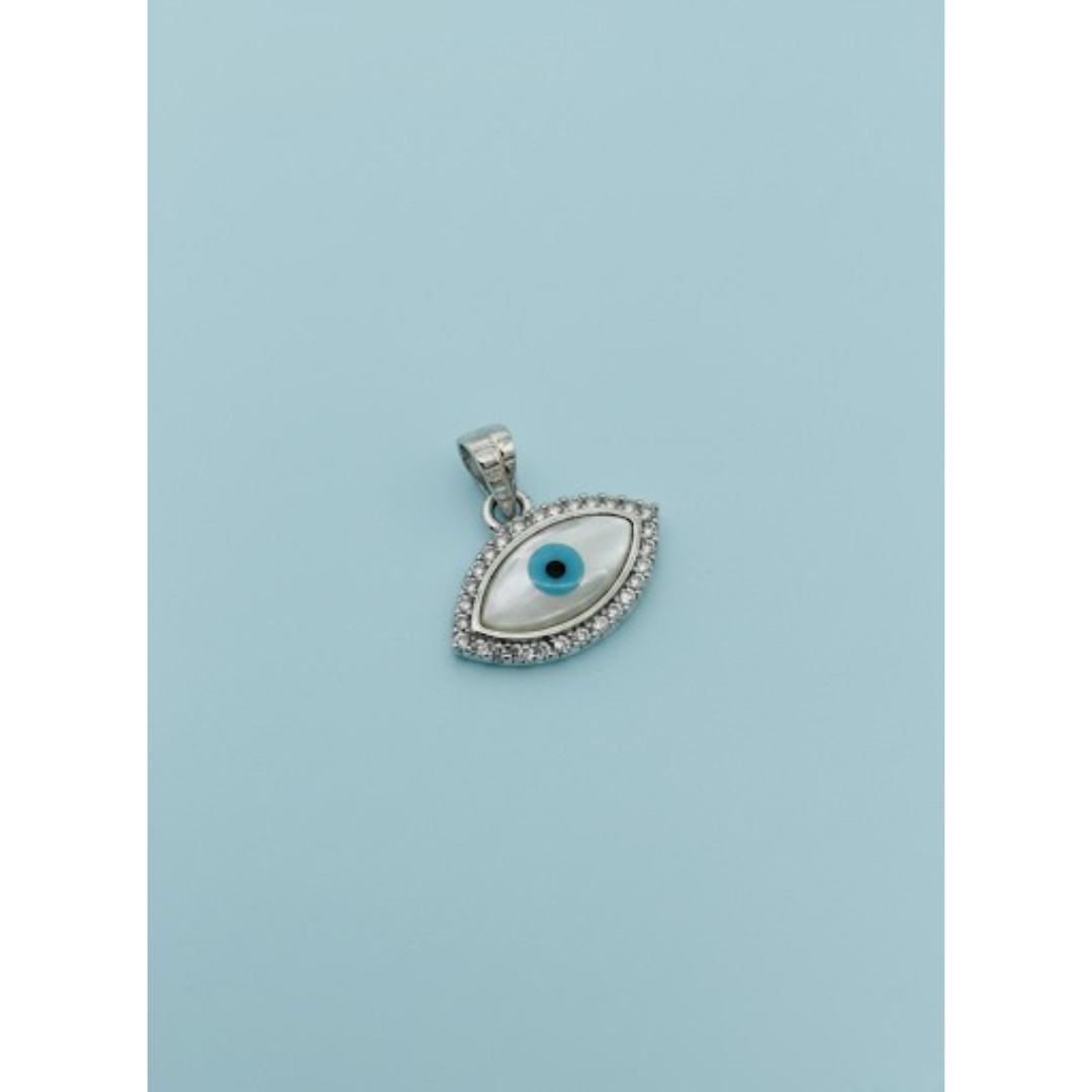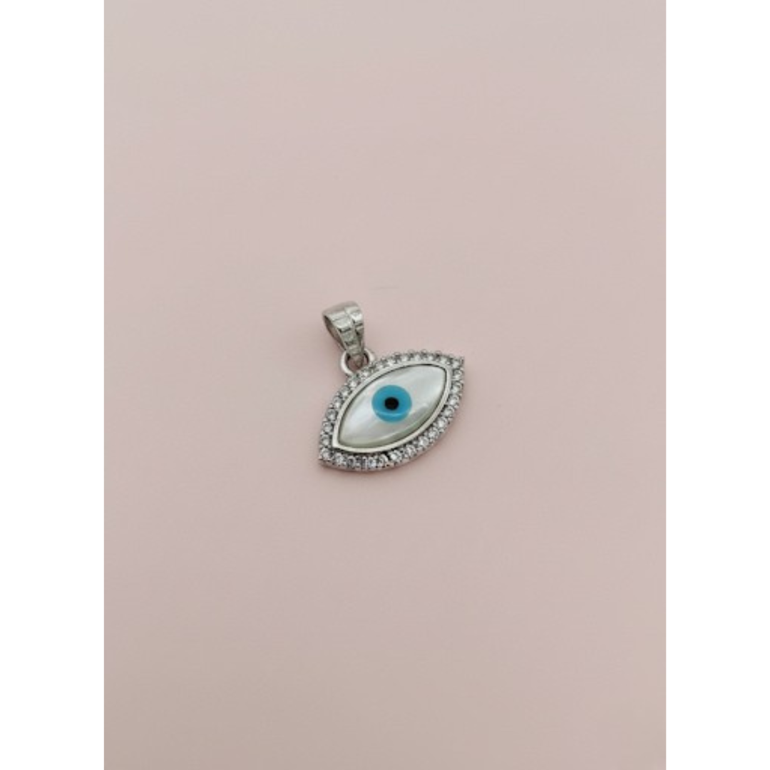Sterling Silver 925 evil eye pendant surrounded by 5A quality Signity stones. A stylish charm believed to protect and bring good luck.
