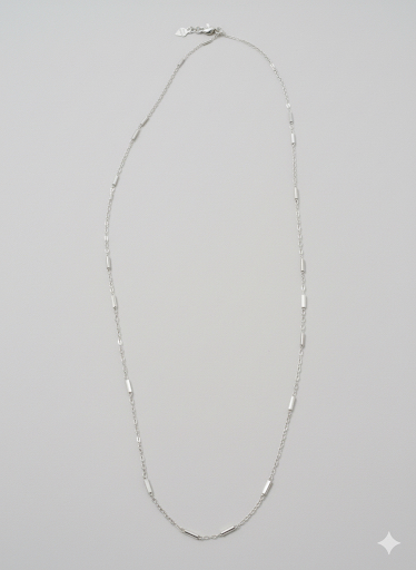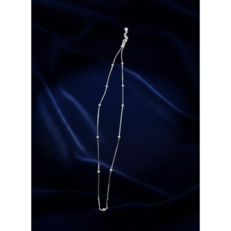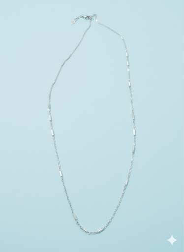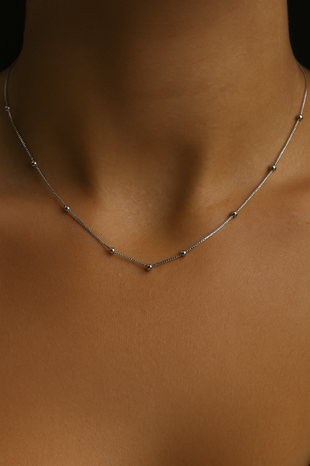 Minimalist silver chain necklace with tiny accents, for a subtle and graceful look.