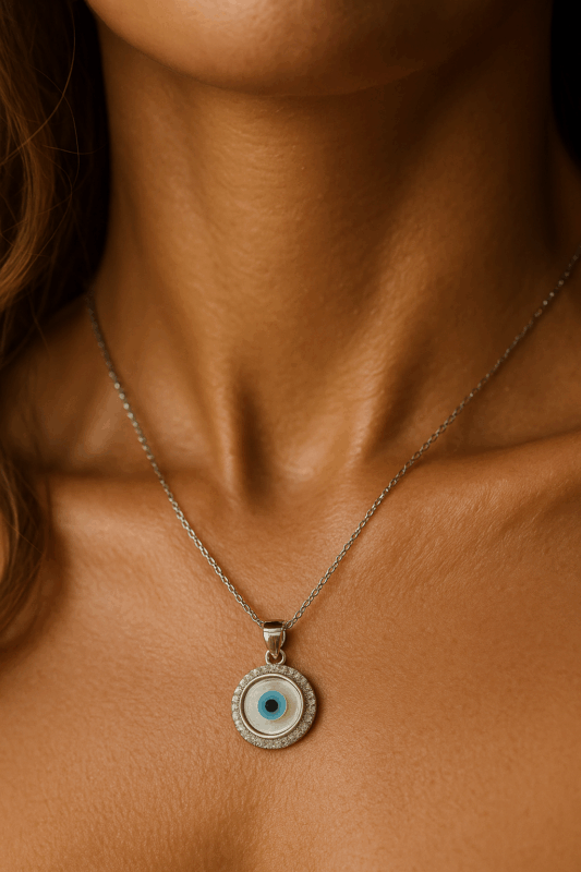 Modern 925 sterling silver pendant with three interlinked circles. Hand-set 5A quality Signity stones add timeless sparkle, symbolizing connection and infinity.