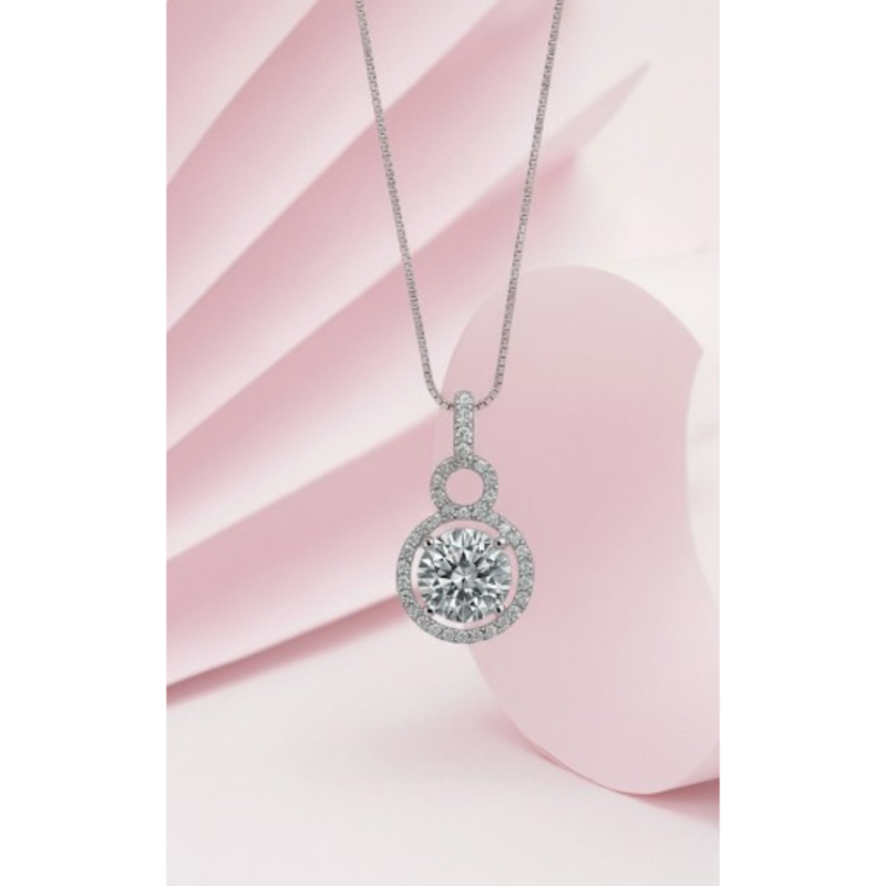 Triple-circle sterling silver pendant with 5A quality Signity Stone sparkle, celebrating eternal bonds.